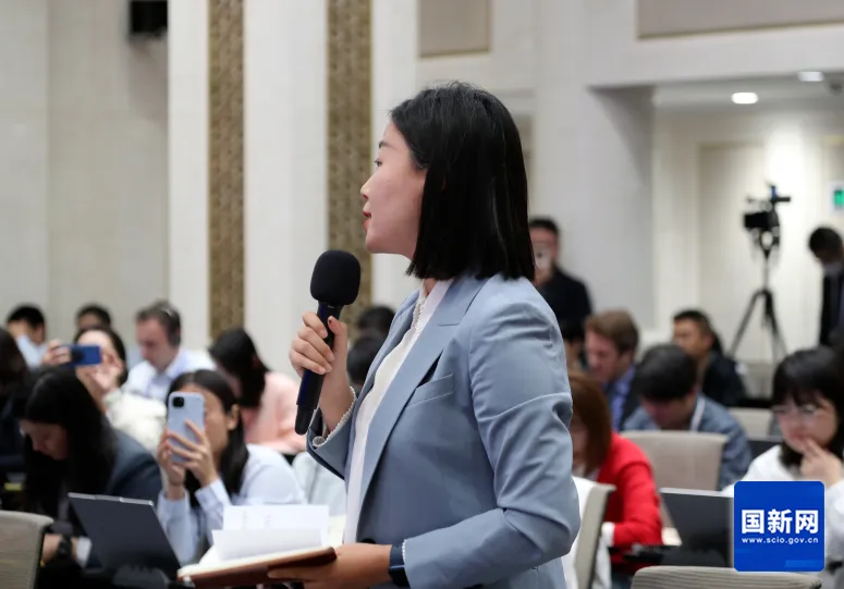 中央广播电视总台央视记者提问(赵一帆 摄)
